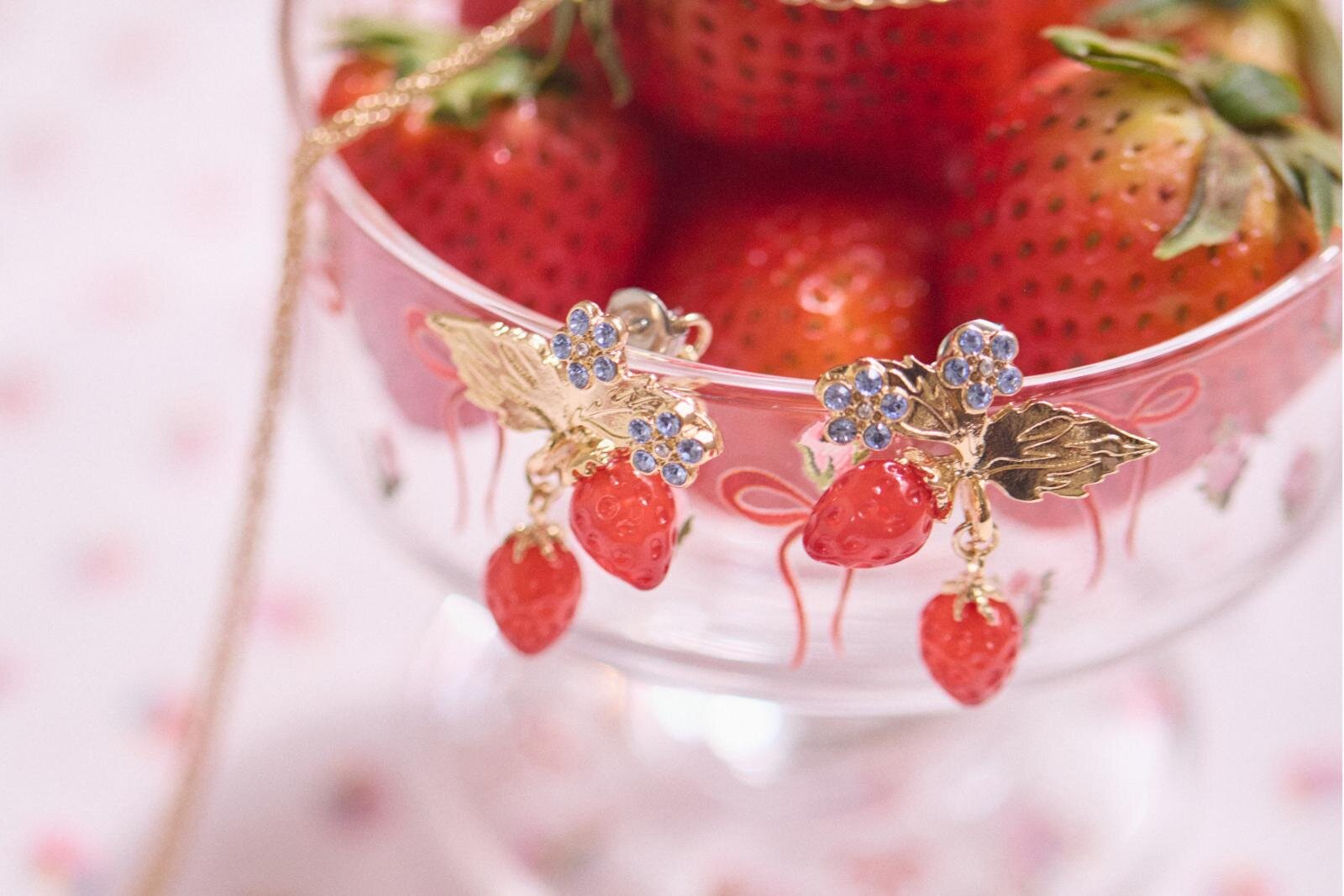 真っ赤ないちごピアスやイヤリング
