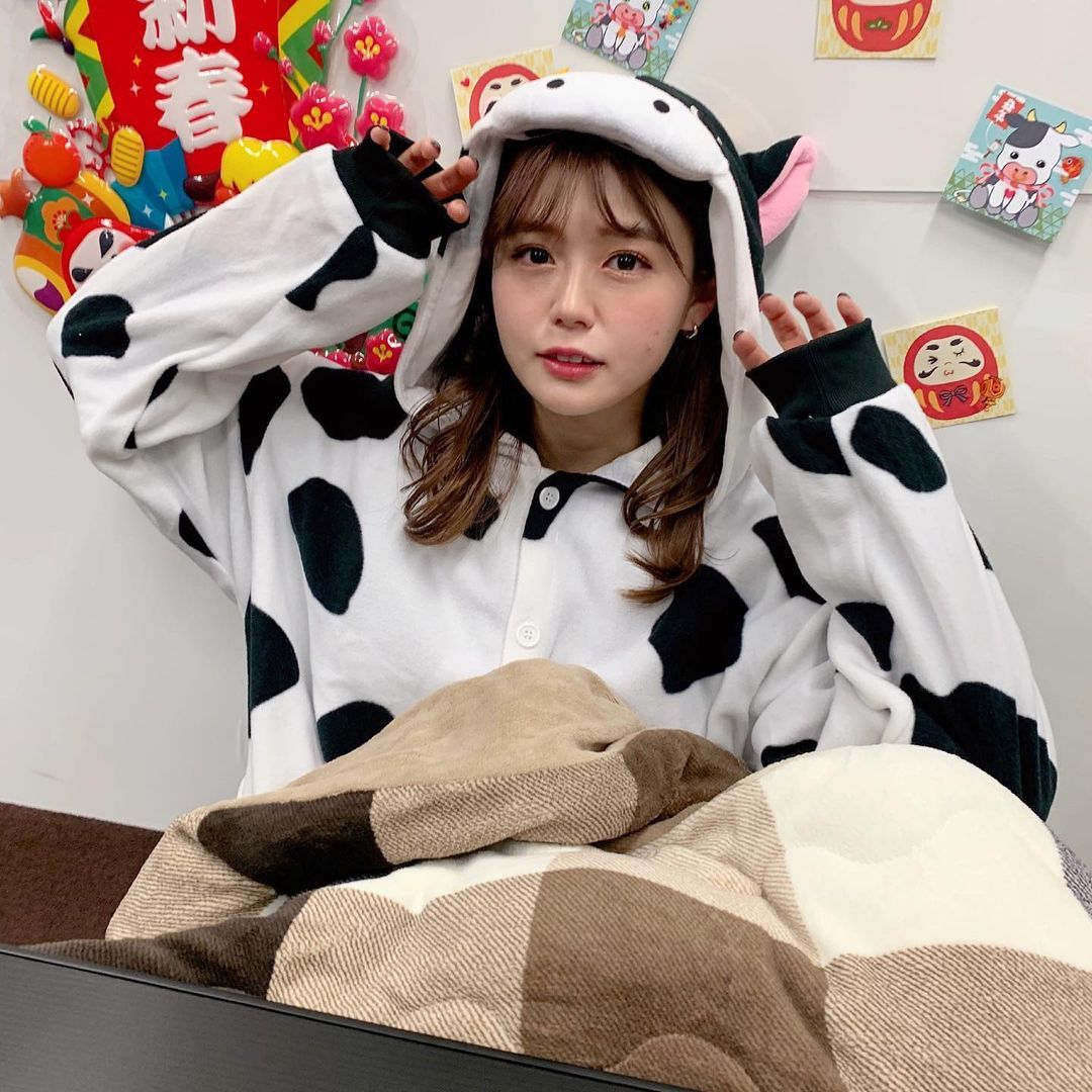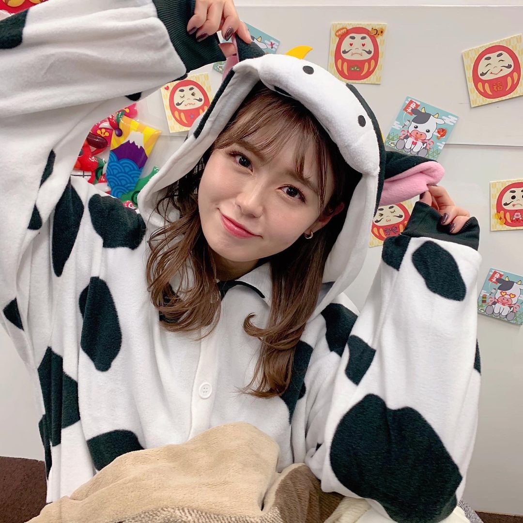 おとといの卓上カレンダーの新年会配信イベントは牛の着ぐるみきました〜🐮💓