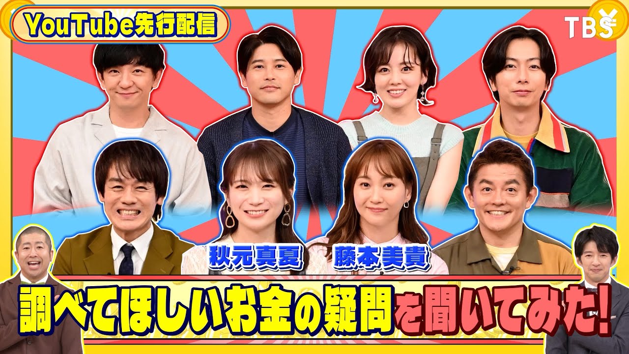 話題の居酒屋で満腹になるまで飲み食い土佐料理を無が夢中に食らい尽くす。 うまや。 さに アタコです。アバレル君が藤沢でたこ焼き屋をオープン。 オリジナルこ焼きをいくら売り上げられる? 土曜夜8時54分。 ここからはYouTube 先行配信。秋本夏さんと藤本美木さんに気になるお金の疑問を聞いてみました。 さあ、まずはこちら森崎チームお願いいたします。 森崎チーム初登場が秋本さん秋本 お願いします。 あ本ちゃんはどうですか?お金は何に使うのが 1番多かったりします? そうですね。あのなんか事務所の 経理の人にこの前あの呼び出されて え、 ちょっと秋本使いすぎだぞって怒られて え何に使ってるの? そう何に使ってるのかとカード迷彩とかを見たら牧坂時代の後輩とかご飯連れてく時にあのかっこいい先輩だと思われたくてかなり高いコースのお店を 予約しちゃうんですよ。 だからそれでも現役の子たちなんでしょ?その子たちは 財布って呼ばれてる可能性あ やだやだ いやそれがわかんないけど面倒身のいい先輩ね ね優しいこそれは 続いてこちら内田チーム 内田チームはもう常連の皆さんですね特に喋ることはないやあるんじゃないかな言ってくださいねお金にまわれた最 こんなん買いましたよとかですか? 可愛い君がなんかこの後輩に奢るみたいなところを VTR でなんか密着で見たことあるんですけど確かに気まいけどなんかその奢ったことを言えよとか SNS にかけよみたいな感じですごい嫌な先輩だったんですね。 意外いいやいやっぱ言ってほしいんで広めて欲しいっていう はい。 なんか可愛い君に怒ってもらったんだみたいなのも多分みんな遠慮して言わないから 遠慮してとかじゃないんじゃない?別に そういうもんじゃないというか。 いや、尊敬するキた先輩とか自然と噂が広まってくじゃない。だっ 木村さんはそうですけどね。 伝説が やっぱその可愛いの場合そんなに広がんないんではずダさ。やっぱ これが可愛い。 これが可いいです。 これが可いい。 さて今回はですね、出演者の方々に調べて欲しいお金にまつわる疑問を考えてきていただきました。 視聴者の皆さんもですね、お金に関する気になることがありましたら番組ホームページで募集していますので是非投稿お願いいたします。 お願いします。 まずはあさん なんかありますか? そうですね。 あの、結構駄菓屋さんに行って、あの、大量に買ったりとか、大人になってからもその大人買いするのとかが好きなので、 あの、駄菓し屋1 件、あの、全部買ったらいくらになるのか。 ああ、夢がある。 ああ、 いわゆる町のこの 駄菓し屋さんですか?古 そうですね。昔からあるところ大人になったらそれ大人買いできるもんなのか全部。 全部全商品。 全商品。 いや、だいけんじゃん。あきもちゃんぐらいならいけんじゃない。 ちゃんぐらいならいけるよ。か そりゃ全部お買い取りよ。 お買い取り 怒られないですかね。 ケりさんには怒られさんには怒られるけど、 ま、経理の人と高しに行った方がいいかもしんないけど 相当恐れてる。怖い。 これま、ちょっとなんか気にはなりますね。 はい。 みんなこう通ってきてる道ですしね。ていうですね。 はい。 これ前向きに ちょっといいです。 検討ちょっとはい。 前向きに前向きに経理の方と話し合いたいと話の番組のこっちのこっちの番組のこっ こっちの経理とそっちの経でちょお 互いじゃあお話で経同士さ続いて藤本さんなんかありますか? あえっと私子供 3 人いるんですけどなんかよく学費とかはなんか一生 1 人いくらとか出てるじゃないですか?効率の場合、私立の場合とか出てますけど 食費ってどれくらいかかるんだろうっていう はああ、 1人の人が大きくなるまで、 成人するまでいいみたいな。 なんか全部自炊パターンとちょこちょこ外食いくパターンで出してあ。 うん。 それをこう目安に生活していきたい。 うん。 ああ、い 藤さんもでもちゃんとあれですもんね。そんな外食もしないですもんね。 あ、そうです。平日は基本的には家で そうですよね。 うん。 うちだからそんなに、ま、近所ってわけじゃないんですけど、なんとなくエリアは一緒で で、ご飯屋さんできましたよね。みたいな話をするんすよ。あそこはダメ高くて美味しくない。 厳しい。 厳しい。 ちゃんとやばくて美いしく。 それでも結構家族お子さんいてって気になる 家庭は多いかもしれないんで。 確かに。 ま、それはちょっとじゃあただ、ま、うちの番組がやるというか、ま、国がやることですよね。それ 確かに。 ま、そうですね。そう。 国に任した方がいいか。 おらく多分。 そうですね。 いくらかわかるかね。12月6日土曜夜8 時54分。 時めく時をTB