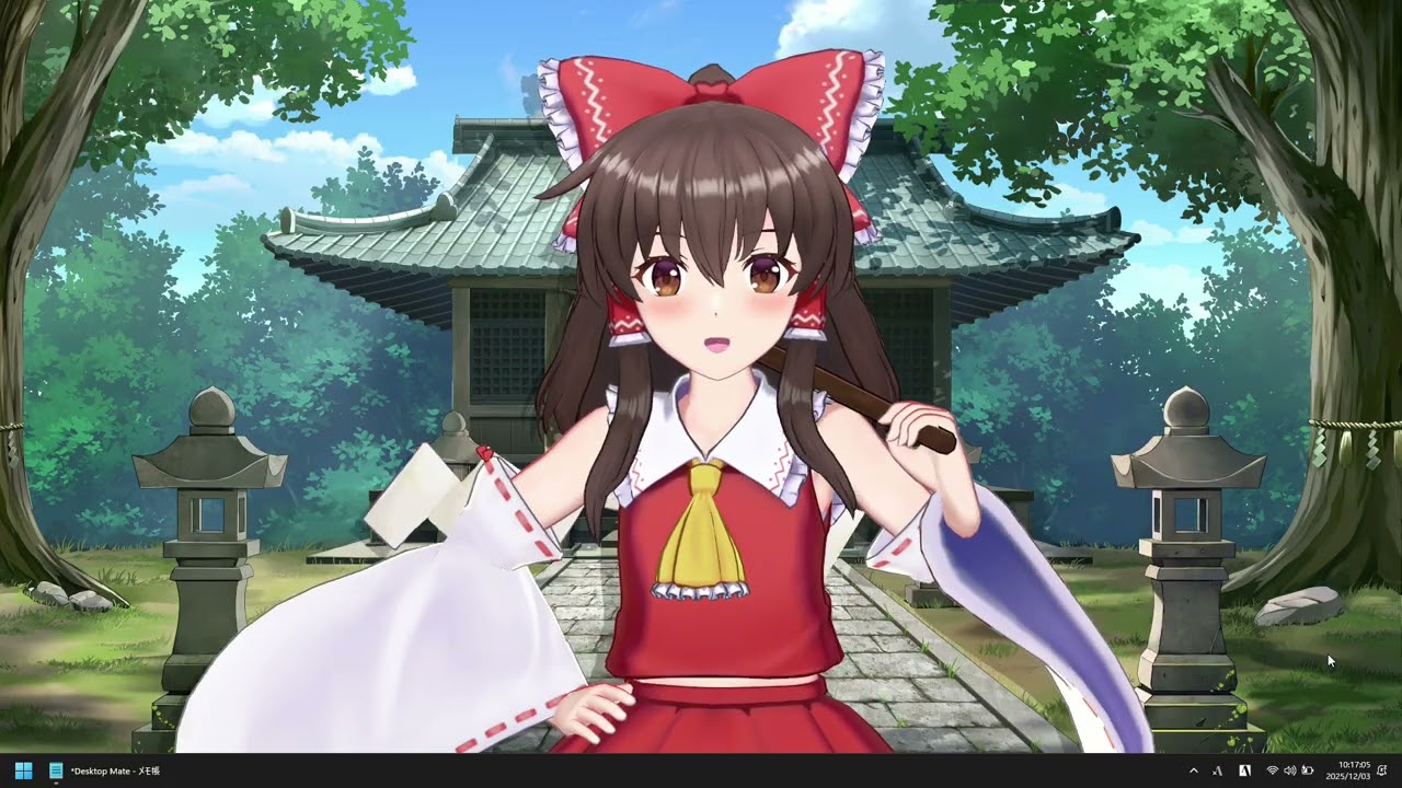 上坂すみれボイスの博麗霊夢がPC画面内から時間をお知らせ【Desktop Mate】