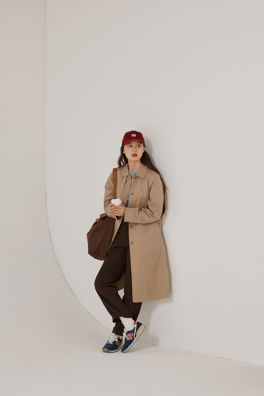 本人私物(アウター/PAR ICI、Tシャツ/Bshop、パンツ/RANDEBOO、ベルト/Levi’s、ソックス/靴下屋、シューズ/New Balance、バッグ/BEAMS、キャップ/Lee)