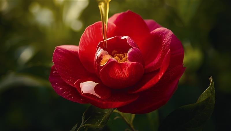 スリープウェアとピローカバーに含浸させた椿オイルのイメージ