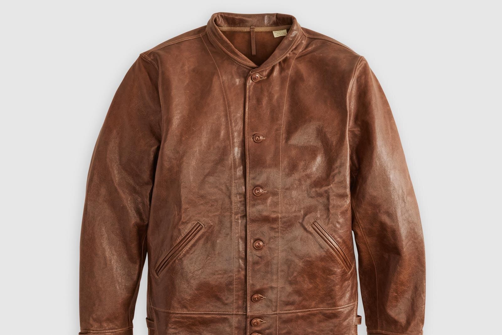 レザージャケットは、アルバート・アインシュタイン(Albert Einstein)が愛用していた「メンロ・コサック・レザージャケット(Menlo Cossack Leather Jacket)」を忠実に再現したもの。実際に着用されていた実物は、リーバイ・ストラウス・アンド・カンパニーがオークションで競り落とし、本社のミュージアムに収蔵されている。