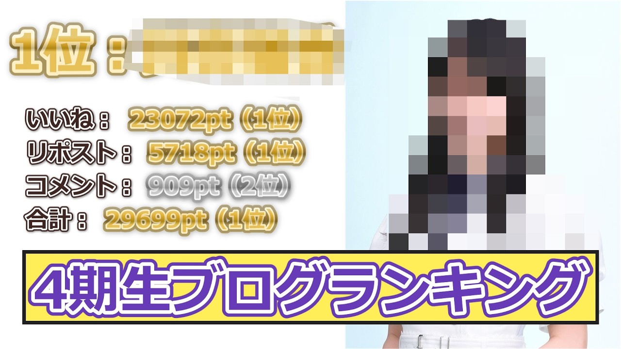 今回の動画は乃木坂46 4期生のブログランキングです。