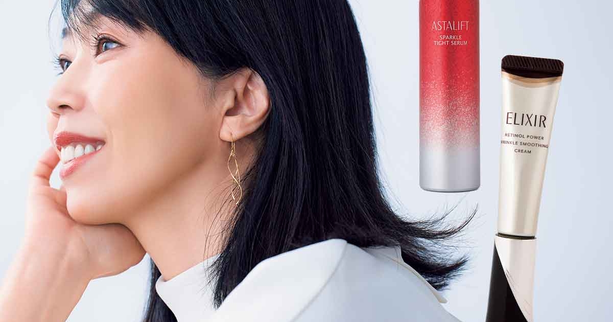 骨格的に目元がたるみやすいので、ケアは重点的に。エリクシールから登場した新しいシワ改善美容液、レチノパワー リンクルクリームは本当にすごい。純粋レチノールに大注目の新成分コラジェネシス®も!新しいサイエンスがギュッと詰まって、まぶたの緩みも、目尻や眉間、おでこのシワまで一気にケア。内側からふわっとする使用感で、今すごく頼りにしています。