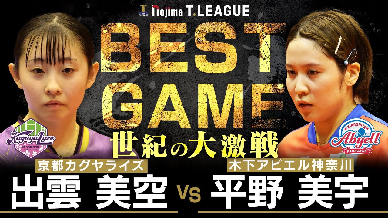 出雲美空 vs 平野美宇 TBESTGAME 京都カグヤライズ vs 木下アビエル神奈川 ノジマTリーグ2025-2026 10月12日(日) 山科地域体育館 実況解説なし【卓球 Tリーグ公式】