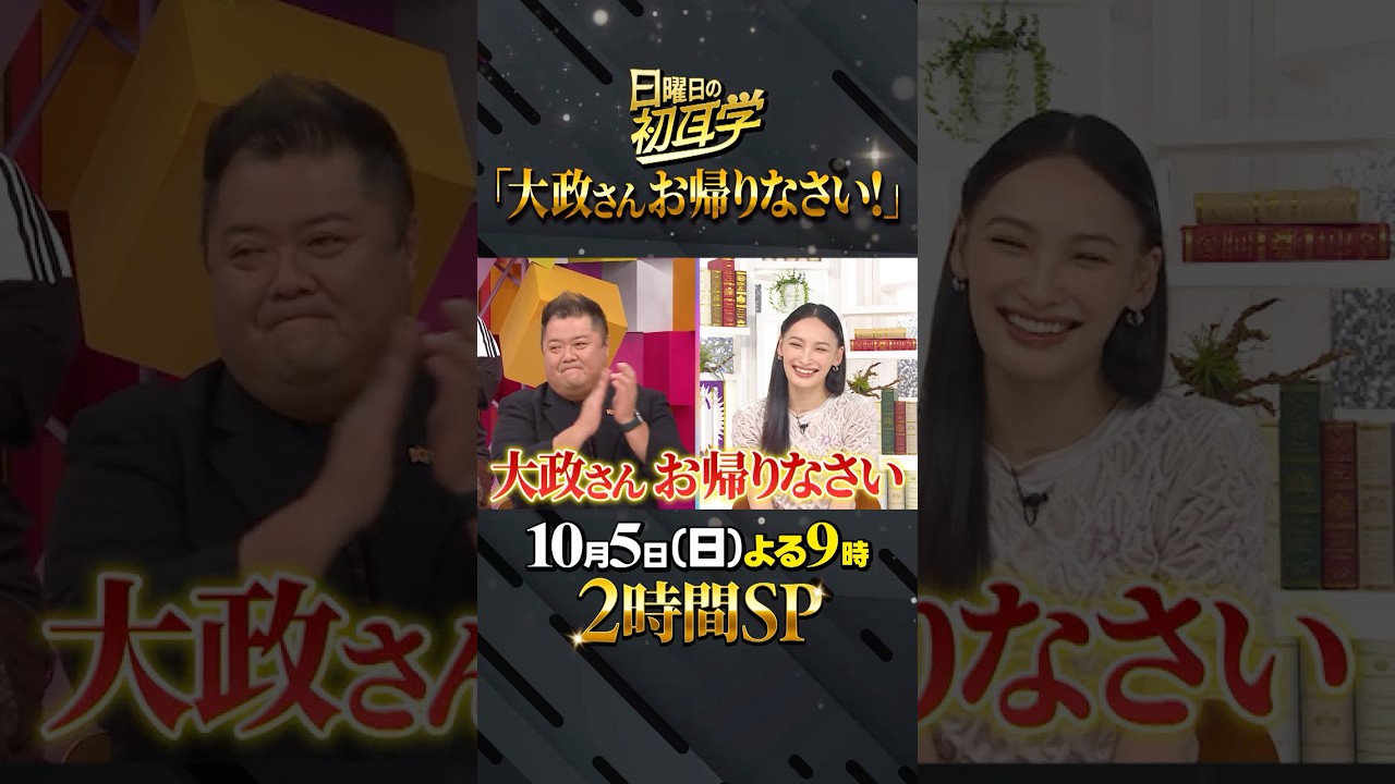 大マさんでし。お帰りなさい。お帰りなさい。 ありがとうございます。 さあ、久々に来てくださった小すさんお願いしますね。 誰が言うてんねん。おい、 誰が久々って言うてんねん。 大マさんでしょ。お帰りなさい。お帰り。 ありがとうございます。 嬉しいです。 お休みの間は初君見てもらってました?僕正式レギュラーなったんですよ。 なってないだろ。うるそう。 びっくりした。 捕だよ。冗談と突っ込む。追てへんやろ。 なってないじゃない。なってないんですよ。 え、小すさんほぼ出てなかったですよね。ほぼ出てないす。 うん。 あ、だってここアインシュタインの譲る君にほぼ決まったんじゃない?やろ。それは 決まりました。 大さん、あの可愛いこになったらしいんですよ。 私まだお会いまし。 見てました?アインシュタインの可愛いはお勧めしません。やめてください。 [音楽] 最低の先輩やばい。 松岡正川島明の豪華日本館スペシャルは夜 [音楽] 9時からの初耳が君 2時間スペシャル
