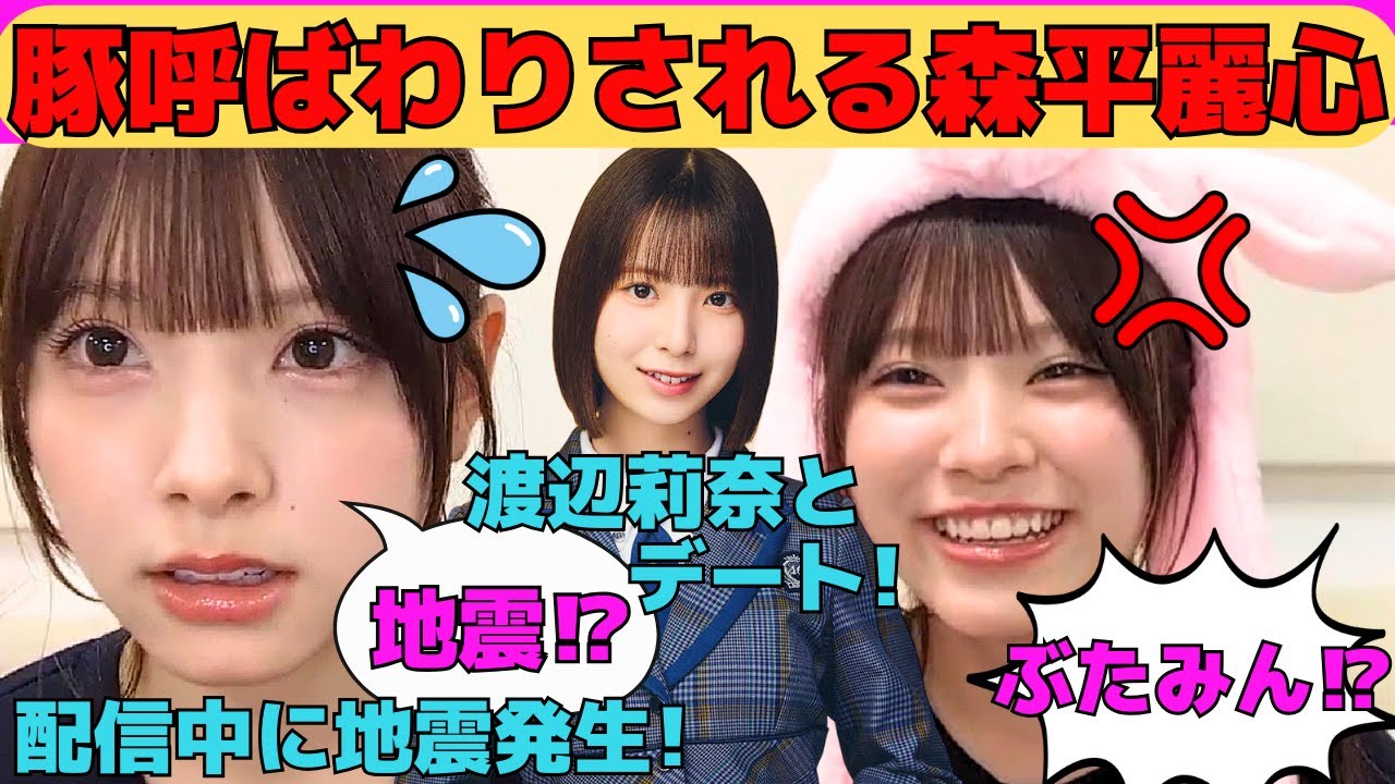 【森平麗心】豚呼ばわりされるうるみん/日向坂46渡辺莉奈がクラスメイトでデート約束/配信中に地震発生で配信を中断するトラブル/賀喜遥香推しで加入前から腹話術を練習/文字起こし(乃木坂46・のぎおび)