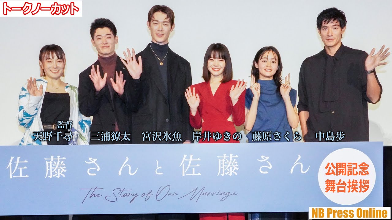 2025年11月29日、TOHOシネマズ新宿にて、映画『佐藤さんと佐藤さん』公開記念舞台挨拶が行われ、岸井ゆきの、宮沢氷魚、藤原さくら、三浦獠太、中島歩、天野千尋監督が登壇。