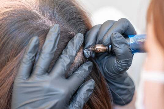 頭皮の真皮の上層部に微細な点を入れて、1点1点手動で頭皮に色素を注入します。施術時間は1~2時間半程度で行います。