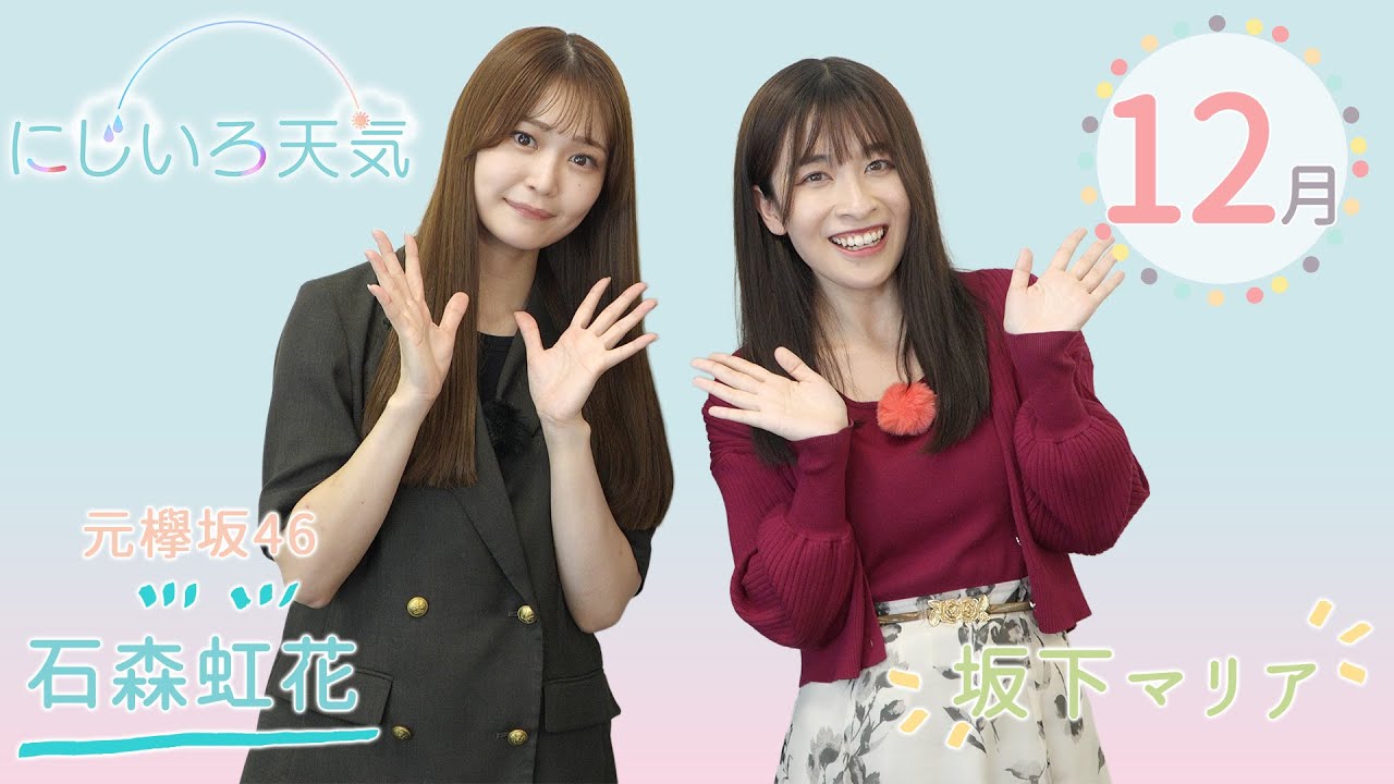 虹色天気。 この番組は私とオーディションで選ばれた方が色々なことに挑戦体験しながらお天気をお伝えしていく番組です。ということで今回は本社の屋上に参りました。天気もいいって [音楽] ちょっと気候もね、ちょうどいいですね。風が気持ちよくて。 [音楽] 宮に来て今6年目ぐらい はい。6年になります。 なるんですけど はい。 なんか特にこういうところによく行くとかありますか?ゆって知ってますか? [音楽] え、知らないです。 ゆ、ナト市というところにあるんですけど、毎週日曜日にやってる朝市なんですけども、宮城の美味しいお魚、新鮮なお魚を買うこともできますし、歯き。 ああ、 もう楽しめるので、 もう行ってしまいます。よく おすめです。 虹色天気がお伝えする大発表による東北地方の季節予報。 東北日本海側では平年に比べ曇や雪または雨の日が多いでしょう。 [音楽] 東北太平洋側では平年と同様に晴れの日が多いでしょう。 [音楽] 成功って知ってますか? 初めて聞きました。到底というのは西側に高気圧、東側に低気圧がある状態のことを言うみたいです。 [音楽] はい。[音楽] 西の方から冷たい空気が東側に流れ込むことによって日本は寒くなってるようなんです。 そうだったんですね。 今年も皆さん寒さ乗り越えていきましょう。 そして皆さんありがとうございました。ございました。 よかったら1 人ずつ感。皆さんすごい優しくあのお話だいたのですごい楽しく撮影することができました。ありがとうございました。 [音楽] ありがとうございます。 この地で皆さんと思い出ができたのが嬉しいですし、あとは個人としてもまたグループのラフラフとしてもこの宮城仙台に戻ってこられるように頑張りたいと思います。 [音楽] お天気情報をお伝えするっていうのも今までちょっとやったことがない経験だったので、あの初めての体験をすることができてすごく楽しかったです。ということで今回この [音楽] 3 人でお届けしました。皆さんありがとうございました。 ありがとうございました。