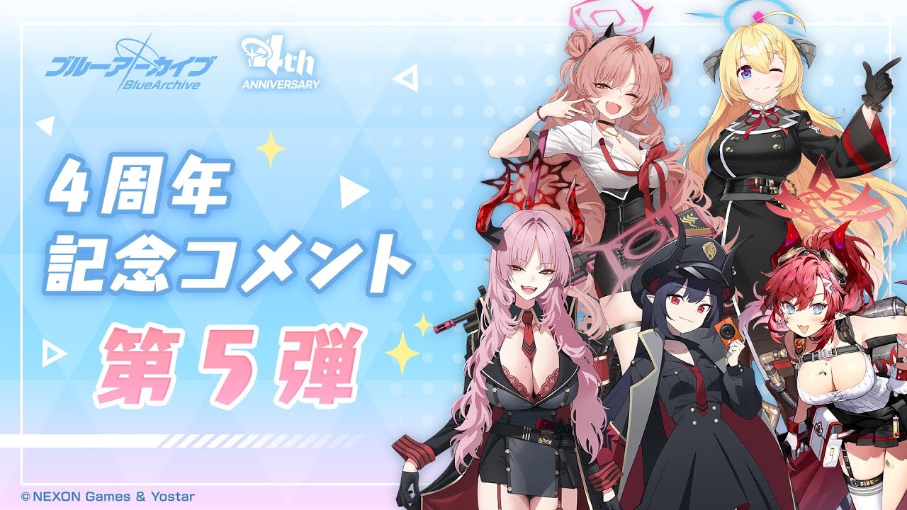Yostarより好評配信中のアプリゲーム「ブルーアーカイブ」の4周年を記念して、声優の皆さんよりいただいたお祝いコメント動画の第5弾です。