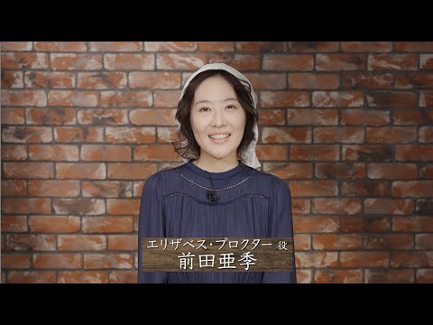 皆さん、こんにちは。前田明です。 それぞれの役の葛藤が本当に見える部分が とっても面白いところだなと思ってます。 あとはそのすごい混乱の中でうん。 最後に残るすごく大切なものっていうのが とてもシンプルなものだっていうのがこう 浮かび上がってくるのが本当にこの作品の 魅力かなと思ってます。 そうですね。本当に演出の上村さんはいつ もその な、何て言うんだろう。年齢のすごく挑戦 しのある役をあのお話しくださるんです けども今回もとってもうん。挑戦のある、 あの、やってみたい作品でしたし うん。なんだろう。少女たちの大きな エネルギーにどんな風にエリザベスが退治 するのかっていうのは本当に稽古の中で 見つけていきたいなと今からワクワクして ます。 曲を読んですごくエリザベスってなんか 墓投げで通わそうに見えるんだけどなんか 実はすごくしっかりと血に根を根を張っ てるようなまっすぐ立ってる女性だなって いう印象がありましていやもう憧れる感じ ですかね。すごく素敵だな素敵な女性だ なっていう風に思う部分がたくさんあり ます。そしてなんか正しくこう生きようと しているところがすごくなんだろううーん 。ま、共感というかもうそうありたいなと いう気持ちはとても分かるのですごくうん 。共感しながら読んでます。感情の大きな うりだったり渦が本当に目に見えるかの ような作品になると思いますので、是非 劇場に体感しに来てください。待ってます 。