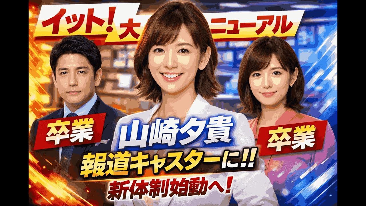 フジテレビ夕方ニュース「Live News イット!」が来春リニューアル。山崎夕貴アナウンサーが報道番組に初挑戦し、新メインキャスターに就任することが明らかになりました。一方で、青井実アナウンサーと宮司愛海アナウンサーは番組を卒業。キャスター交代の背景、フジテレビの番組改編の狙い、今後の報道番組の方向性を詳しく解説します。