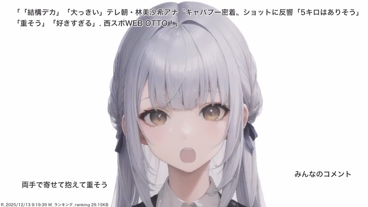 「結構デカ」「大っきい」テレ朝・林美沙希アナ〝キャバプー密着〟ショットに反響「5キロはありそう」「重そう」「好きすぎる」. 西スポWEB OTTO! ニュース みんなの反応 などをVTuberがお届けします。 この動画の参照記事:https://news.yahoo.co.jp/articles/774289cba2c9dbd8dfa74a60e3f3eaed6556bfee announcerアナアナ美人女子アナ女子アナ美人林美沙希 Write A Commentコメントを投稿するにはログインしてください。