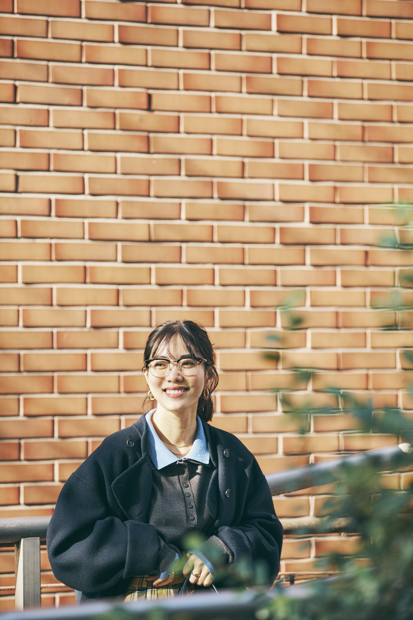「ゴールドのアクセサリーやメガネできれいめに仕上げたのもポイントです。ネックレスは高校を卒業した時にプレゼントでもらったものを長年身に付けています」。