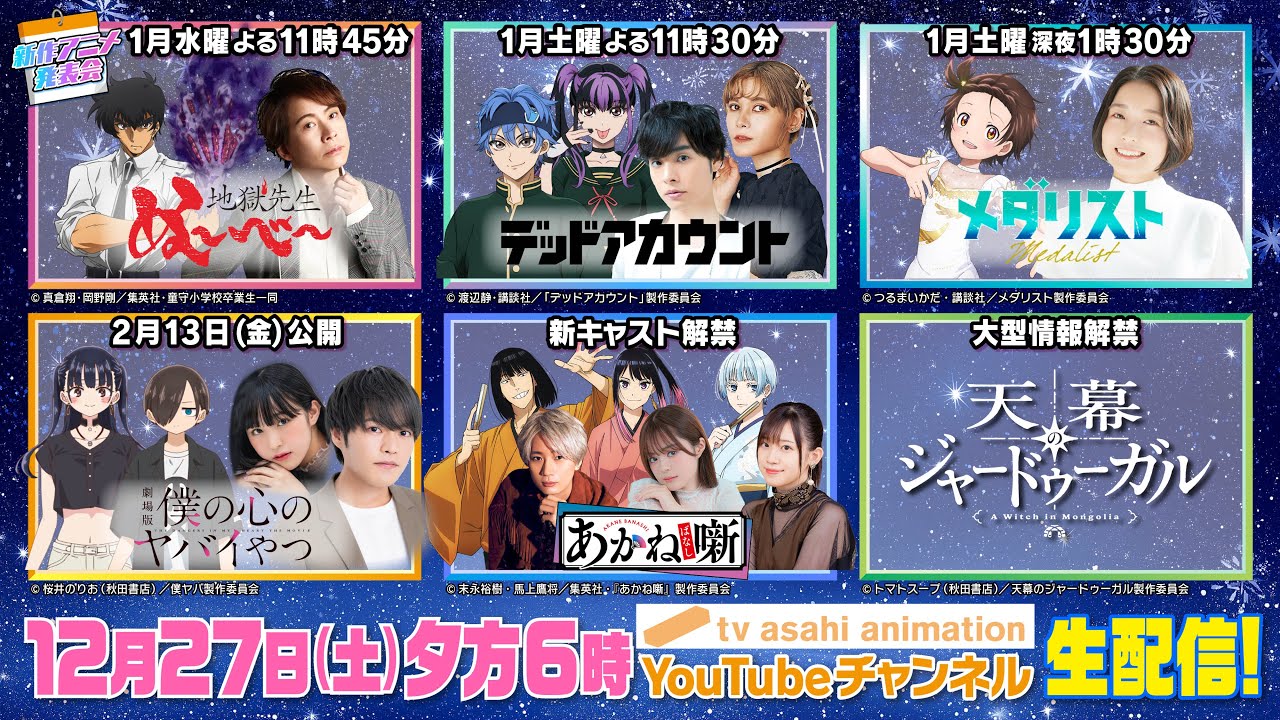 【生配信】テレビ朝日新作アニメ発表会【12月27日(土)よる6時~】