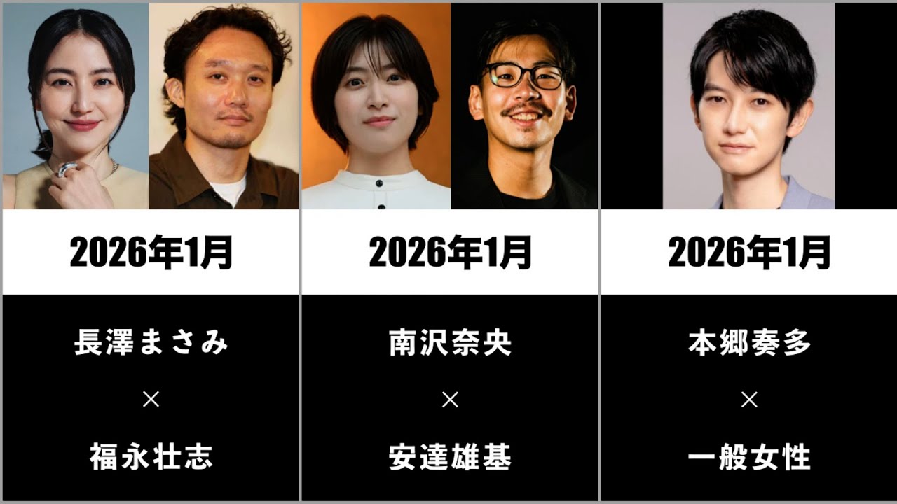 2026年になり長澤まさみ、南沢奈央、本郷奏多など芸能人の結婚発表が続きました。気になったので最近の芸能人の結婚をまとめてみました。