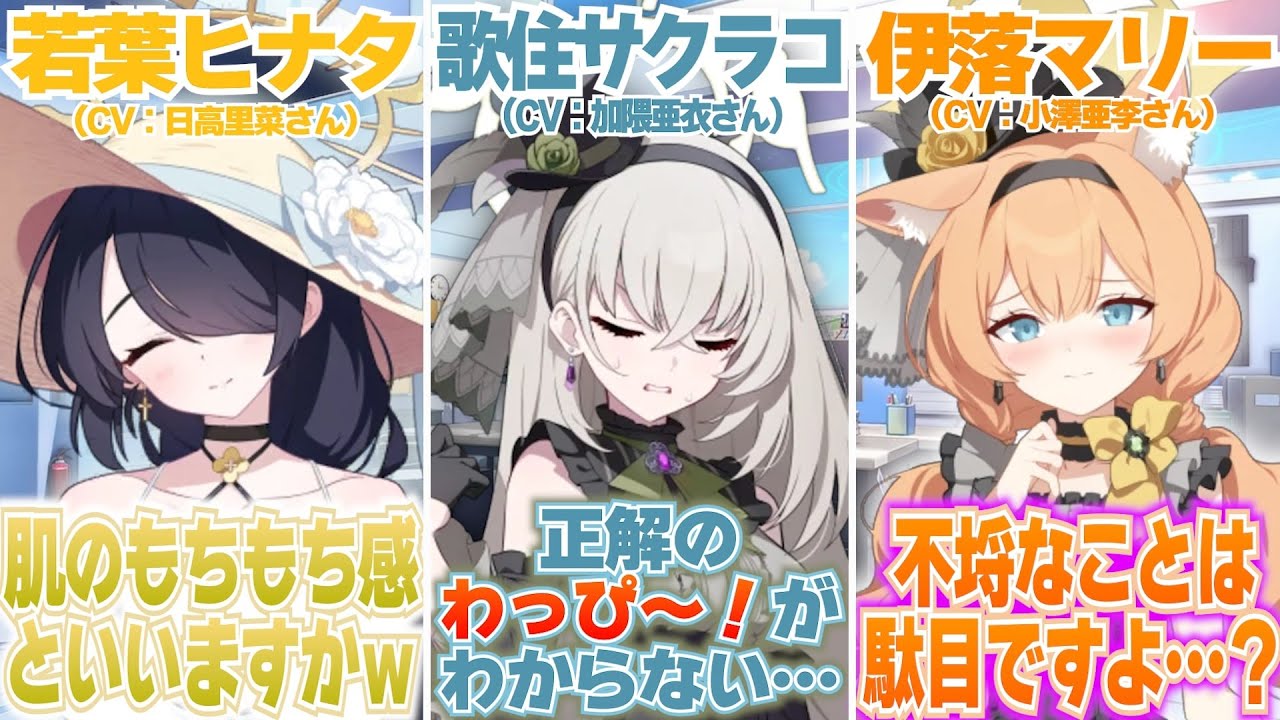 【ブルアカ】シスターフッドの生徒たちのボイスと担当されてる声優のお声比較(CV:加隈亜衣さん・日高里菜さん・小澤亜李さん)