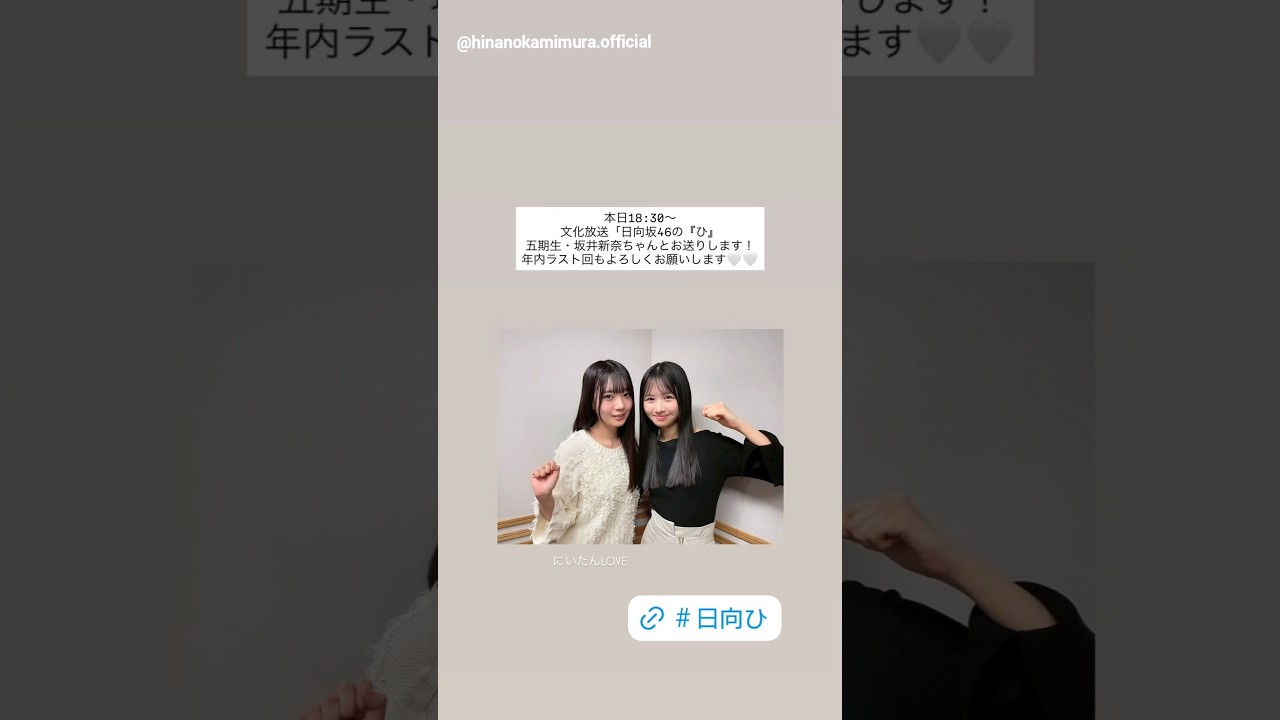 上村ひなの お知らせ!本日12月28日18:30~文化放送「日向坂46の『ひ』」に出演いたします