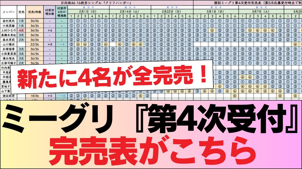 【日向坂46】新たに4名が全完売!ミーグリ『第4次受付』完売表がこちら【16thシングル クリフハンガー】 #日向坂46 #日向坂 #日向坂で会いましょう #乃木坂46 #櫻坂46