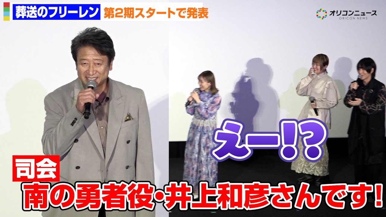 テレビアニメ『葬送のフリーレン』第2期の完成披露上映イベントが11日、都内で開催され出演者のフリーレン役・種崎敦美、フェルン役・市ノ瀬加那、シュタルク役・小林千晃が出席した。サプライズで新キャストとなる南の勇者役の井上和彦が登場すると、会場を驚かせた。