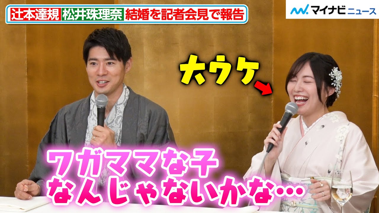 辻本達規(BOYS AND MEN)と松井珠理奈が7日、記者会見を実施。司会に本田剛文(BOYS AND MEN)をむかえ、結婚について語った。