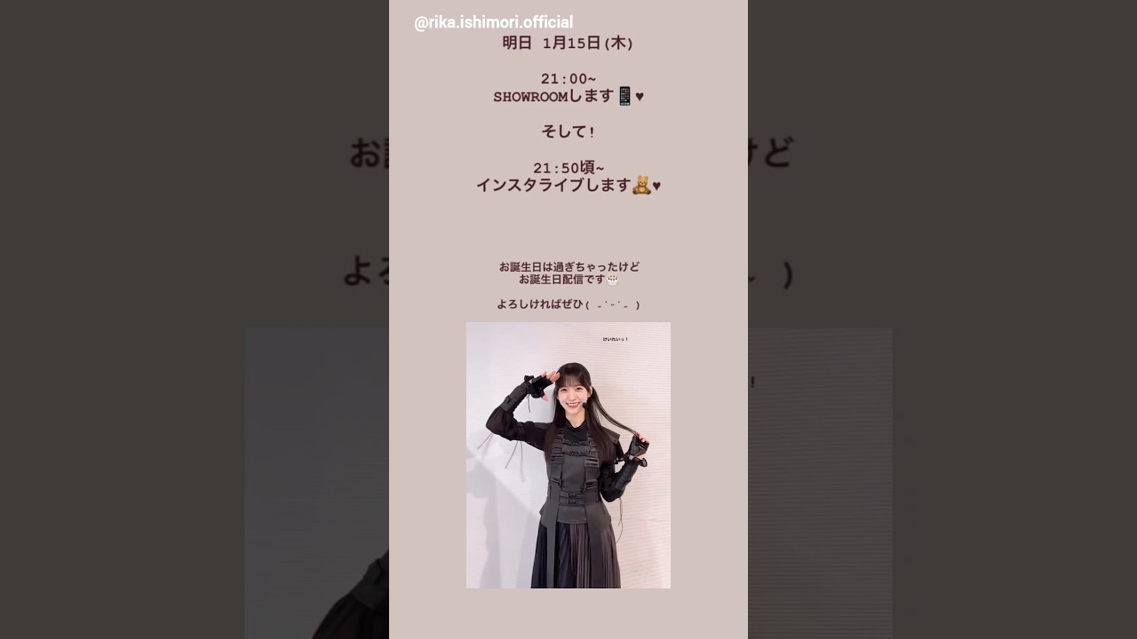 石森璃花 お知らせ!明日1月15日21:00~SHOWROOM配信とインスタライブがあります!Instagram 櫻坂46