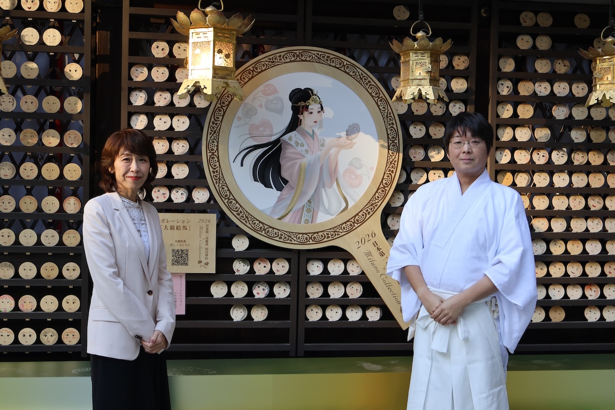 同企画は「ミラノコレクション」が年に1度、数量限定で販売する“フェースアップパウダー”の2026年版の発売に合わせたもの。1月31日まで、限定御朱印の授与や“大鏡絵馬”の展示、フェースパウダーのサンプル配布を実施している。昨年11月22日には一般参加者60人を招いた体験イベントも開催した。