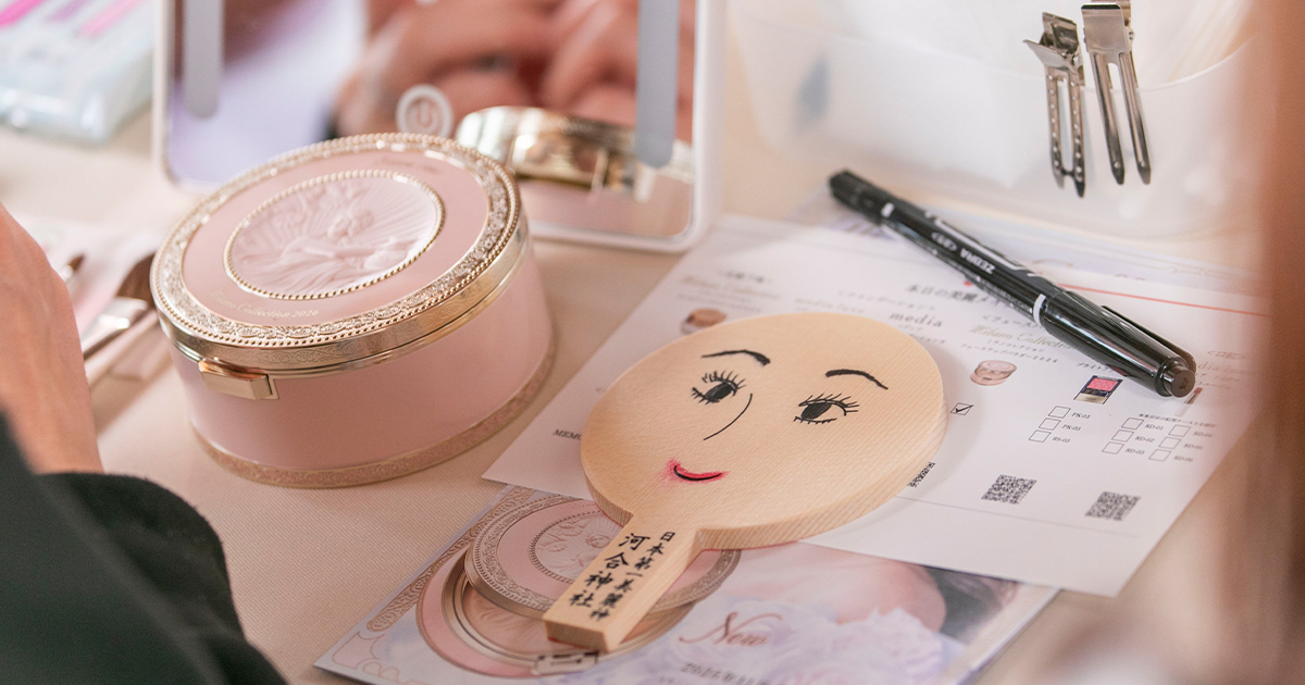その後、参加者は鏡絵馬を手に、巫女を先頭に糺の森を参進し、下鴨神社から河合神社へ移動。通常は行われない美麗祈祷を受け、鏡絵馬を本殿に奉納した。参加者には、当日発売した「ミラノコレクション」の“フェースアップパウダー2026”と会場限定のコラボレーション手鏡をプレゼント。あわせて、製品容器と連動したピンク色の美鏡守も河合神社からサプライズで授与された。