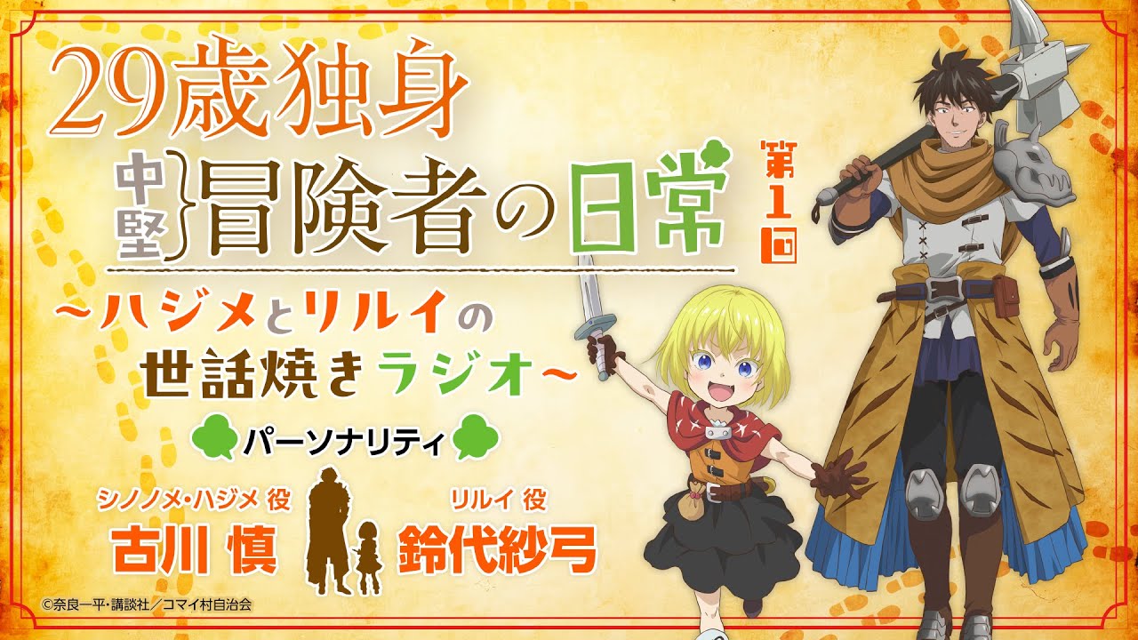 2026年1月から放送開始のTVアニメ「29歳独身中堅冒険者の日常」の最新情報や魅力をお届けするWEBラジオ番組です。記念すべき第1回はは、ハジメ役の古川慎さん、ルリイ役の鈴代紗弓さんのお二人でお届けします。