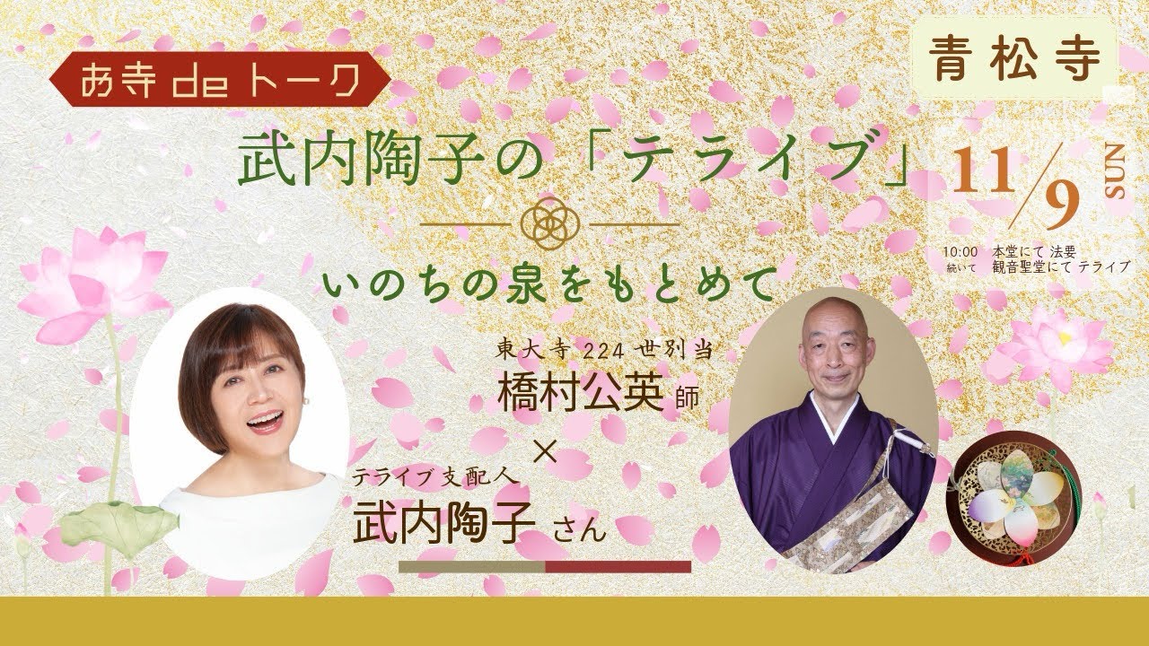 令和7年11月 武内陶子のお寺deトーク「テライブ」〜いのちの泉をもとめて〜(編集版)ゲスト橋村公英師(東大寺現別当)