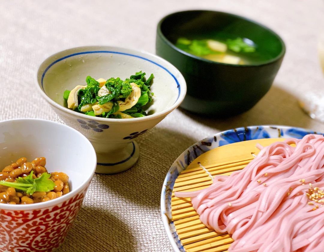 桃の節句🎎🌸 祖母がひな祭りだからと 白酒をくれたので こんなご飯になりました🌸 #早織飯 #今日のごはん #ひなまつり さくらうどん だし巻き卵 三つ葉と豆腐のお吸い物 菜の花と練り上げの和え物 納豆 桜餅 白酒 #saori_watanabe#渡辺早織Saori WatanabeWatanabe Saoriひなまつり今日のごはん早織飯