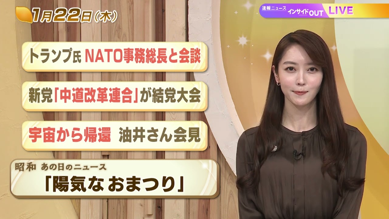 【今日のニュース1月22日】「トランプ氏 NATO事務総長と会談」「新党『中道改革連合』が結党大会」「宇宙から帰還 油井さん会見」「昭和あの日のニュース 61年前 陽気なおまつり」 BS11