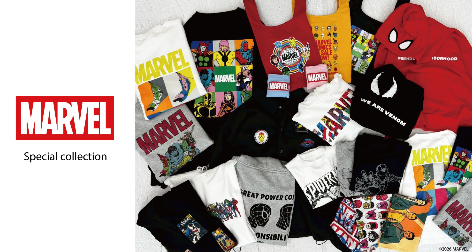 世界中で絶大な人気を誇る『MARVEL』は、2026 年に『MARVEL』最新作の映画公開を予定しているなど、注目度の高いタイミングです。親子でスペシャルコレクションアイテムを楽しみながら、『MARVEL』が持つエネルギッシュな世界観を、日常のファッションを通じてご堪能いただけます。