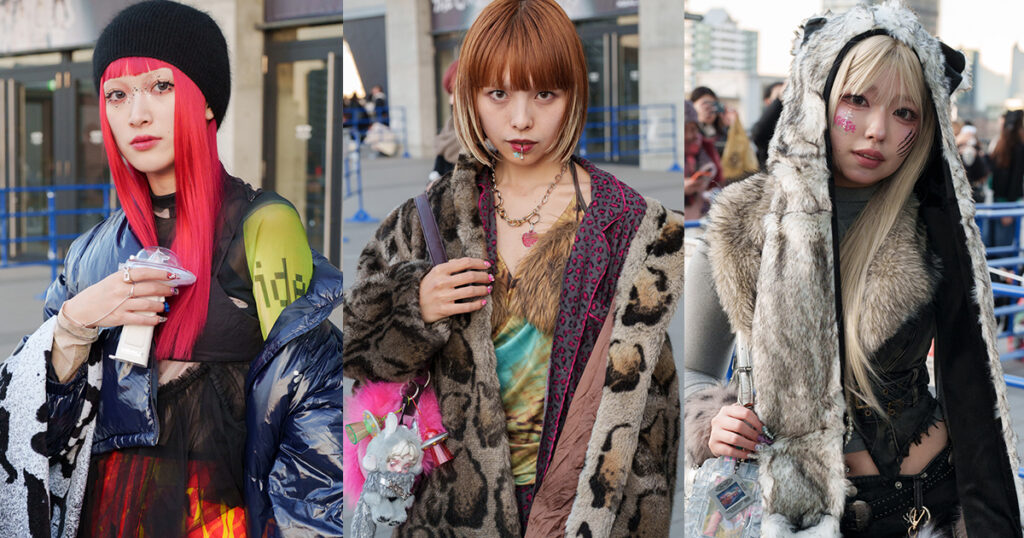 メイクでは、引き続きラインストーンが人気。「シーイン(SHEIN)や100円ショップで購入した」という声も多く、つけまつ毛やアイラインを大胆に引いた強めの目元に、ラインストーンを散りばめたメイクが目立った。ネイルにもこだわりが感じられ、色鮮やかで大胆なゴテゴテネイルや、爪先にパールをあしらった個性的なデザインなど、コーディネートに合わせたネイルを楽しむ人が多く、それぞれのセンスが光っていた。
