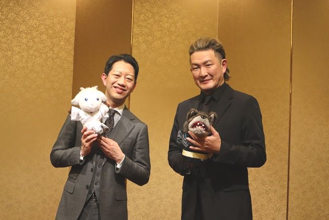 博多座(福岡市博多区)で約8年ぶりに上演される新作歌舞伎「あらしのよるに」。オオカミとヤギの友情を描いた原作絵本との出合いから中村獅童さんが歌舞伎化し2015年に初演、博多座には18年にお目見えした。再演の今回、オオカミのがぶ役は前回に続き獅童さん、ヤギのめい役を中村壱太郎(かずたろう)さんが務める。2月7日(土)の開幕を前に福岡市内で開かれた取材会で、獅童さんと壱太郎さんが作品への思いや互いについてを熱く語った。