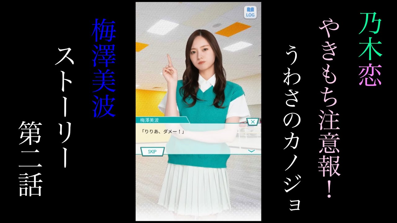 乃木恋にて過日開催されていたイベント「やきもち注意報!うわさのカノジョ」の梅澤美波さんのストーリー第二話のプレイ動画になります。
