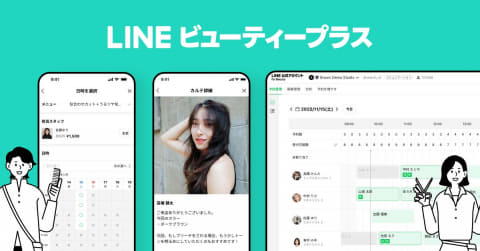 理美容業界向け「LINEビューティープラス」は、予約管理、カウンセリング、カルテ管理、LINE公式アカウントにおける配信機能を一体で提供。予約からアフターフォローまでをLINE上で完結可能とする。