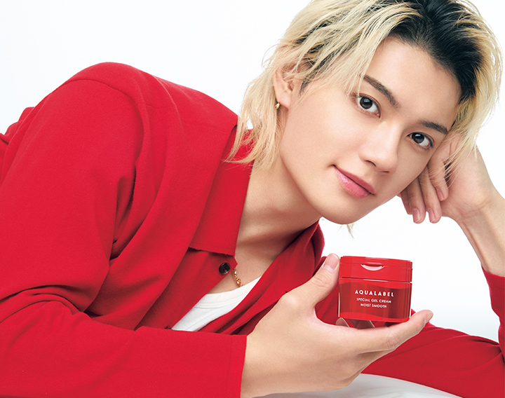 今、圧倒的な存在感を放ち、活動の幅を着実に広げている佐野勇斗さん。どんなシーンでも映えるつるんとうるおった肌は、至近距離でも健在!その美肌を支えるのが、手軽なのに大人毛穴まで本格的にケアできる、進化した〝赤のアクアレーベル〟。忙しい日々に欠かせない心強い相棒です。