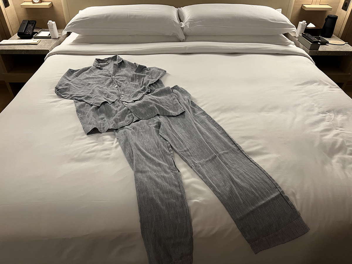 高揚した気分のまま部屋に戻ると、「やわらかさと肌触りにこだわった」というオリジナルのパジャマが用意されていた。これに着替え、ふかふかのキングサイズベッドにもぐり込んだとたん、深〜い眠りに落ちてしまったのは言うまでもない。