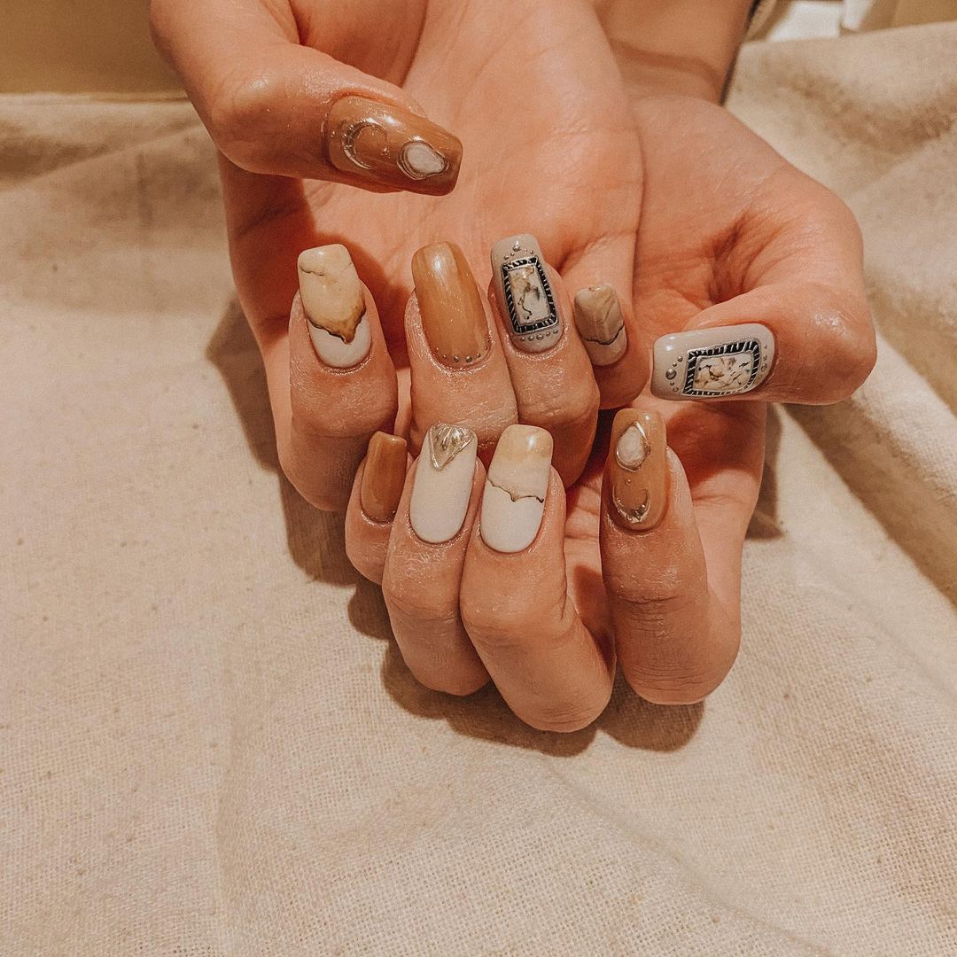 . おにゅう💅🏾 撮影で上からマニュキュア塗れるように パーツ少なめのアートで♡ いつもフィルターで色味変わっちゃってるから どっちも載せときます😂笑 Ikeda MiyūMiyū Ikedaみちょぱ池田美優