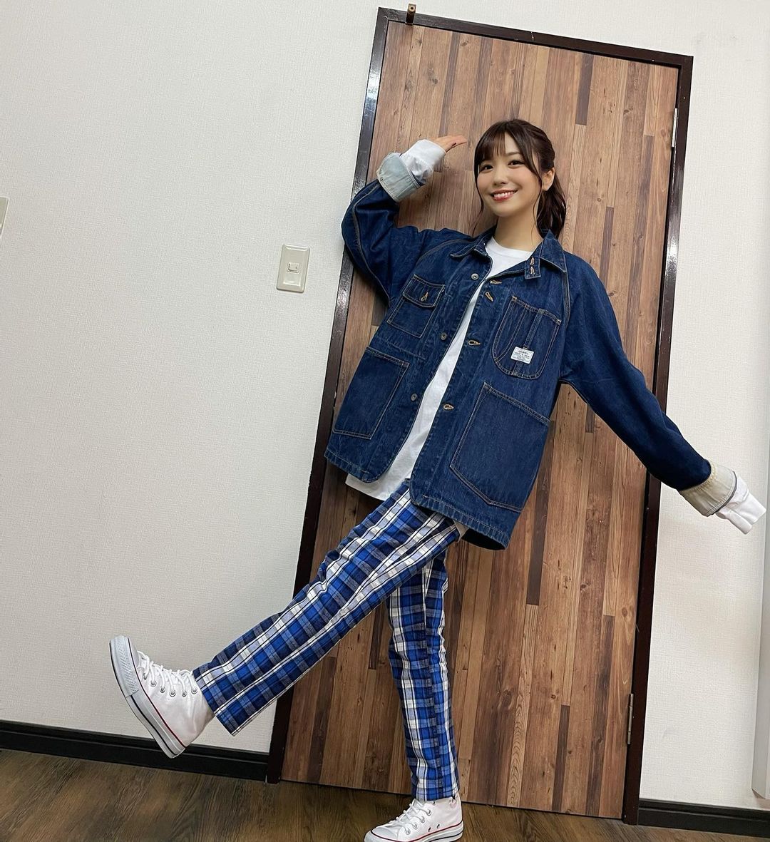 #ReSTARTING!! MV衣装✨ . . ポニーテール好評で嬉しいです! . . カジュアルで動きやすくておしゃれで最高でした!✨ . . 4/7発売です✨予約してね✨ . . #ootd #aimi#aimi_terakawa#寺川愛美#愛美Aimi TerakawaootdReSTARTING!!Terakawa Aimi