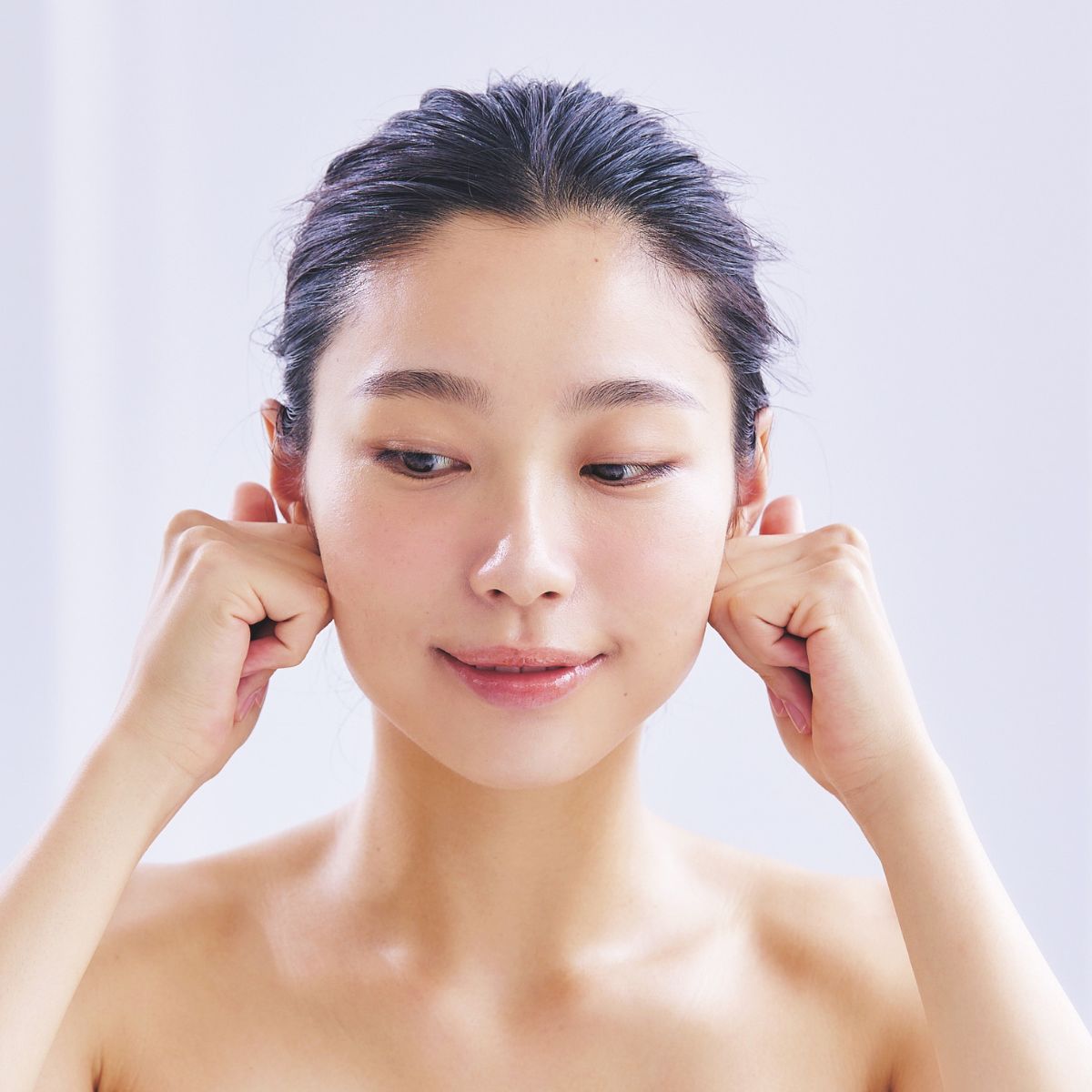最後に7秒間、耳を引っ張ったり回したりします。ここまでで約20秒。毎日の習慣に。