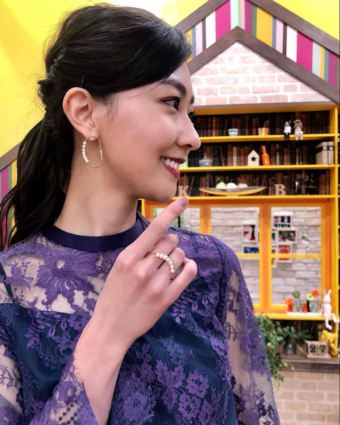 _ 衣装💜 私好みのお洋服を 毎回用意してくださいました😌 このパンツ丈も長くて可愛かった❣️ あとピアスとお揃いの この指輪がとっても可愛いの😍 (2枚目→→) #tbs #王様のブランチ #yurina_kumai#熊井友理奈Kumai YurinatbsYurina Kumai王様のブランチ