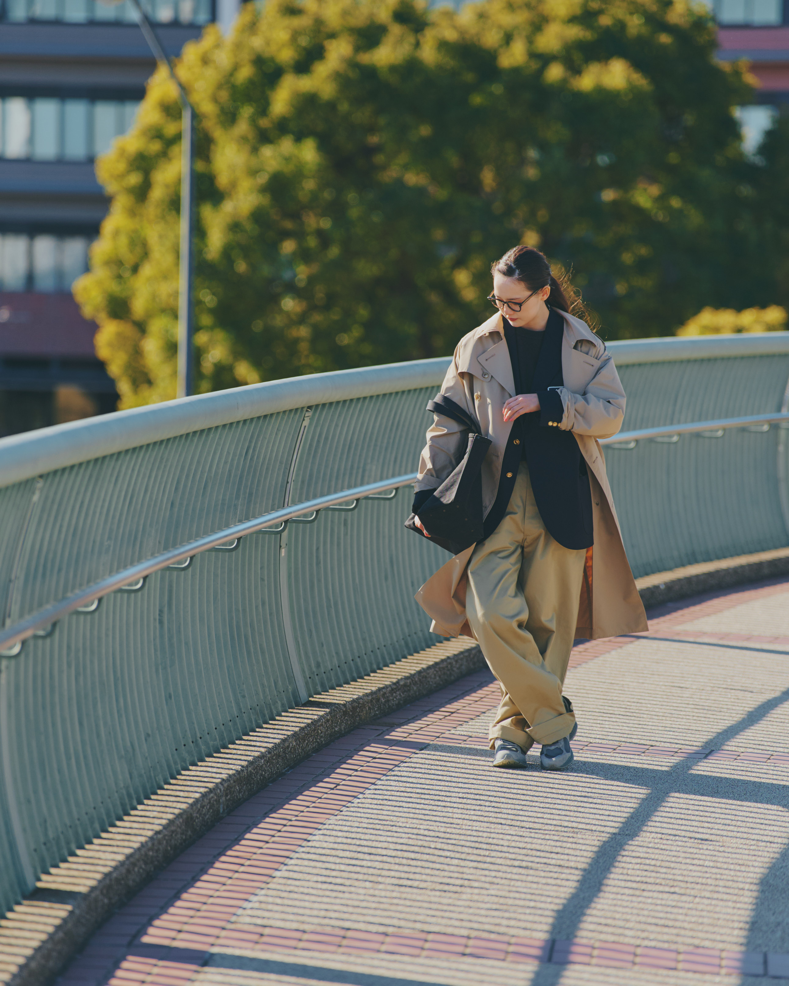 お洒落なジェンツをお手本に、紺ブレザーとトレンチコートを粋にコーディネート。コートとチノパンツの色を揃えて、大人の余裕を感じさせて。きちんとした雰囲気はありつつも、このゆるっとしたサイズ感がこなれた着こなしにしてくれる。