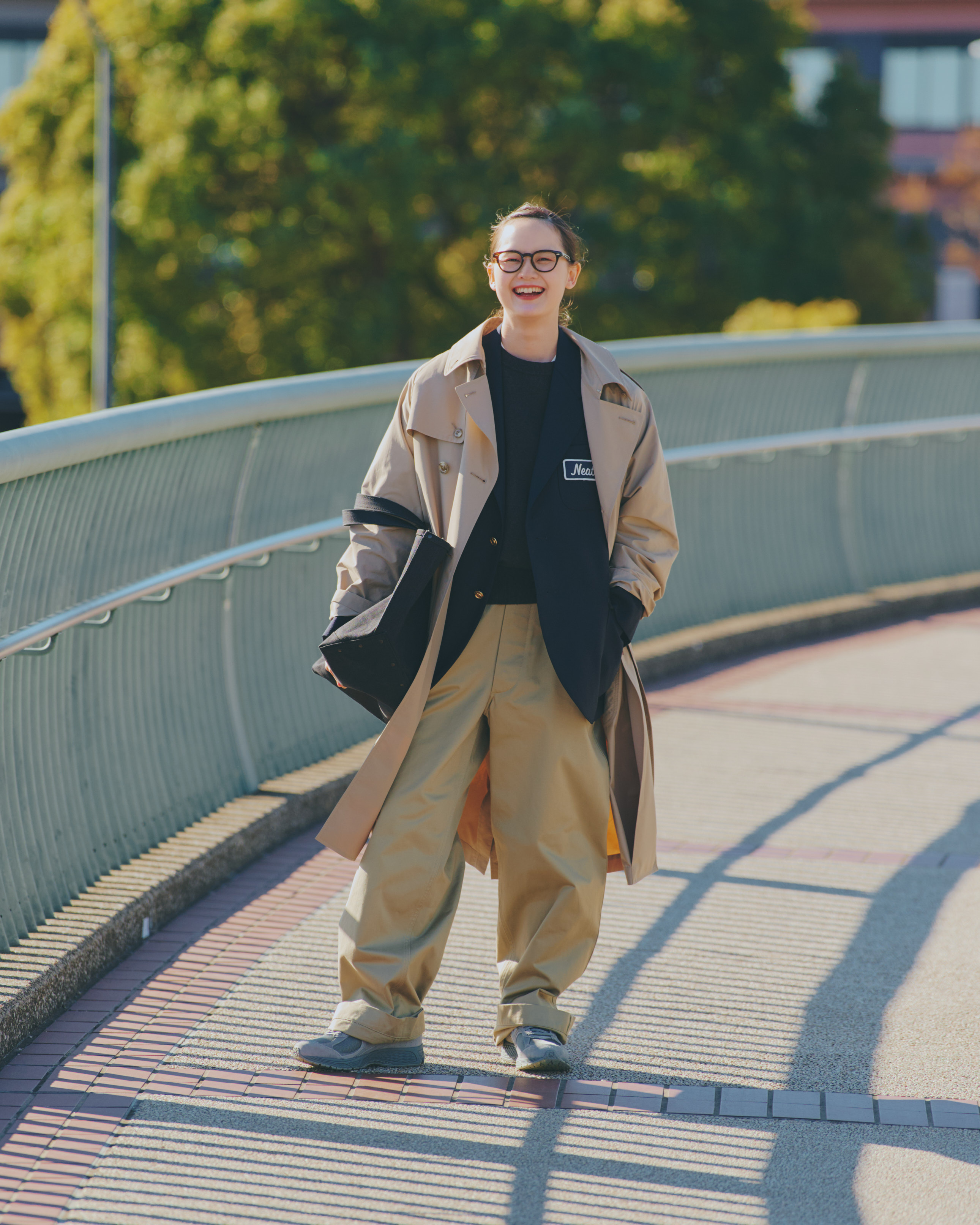 コート¥53900/Traditional Weatherwear(トラディショナル ウェザーウェア 渋谷店)、ジャケット¥132000/NEAT(にしのや)、セーター¥20900/BRITISH MADE(ブリティッシュメイド 青山店)、パンツ¥29700/Nigel Cabourm(アウターリミッツ)、メガネ¥42900/EYEVAN(アイヴァン 東京ギャラリー)バッグ¥33000/HYKE(ボウルズ)、シューズ¥22000/New Balance(ニューバランスジャパンお客様相談室)