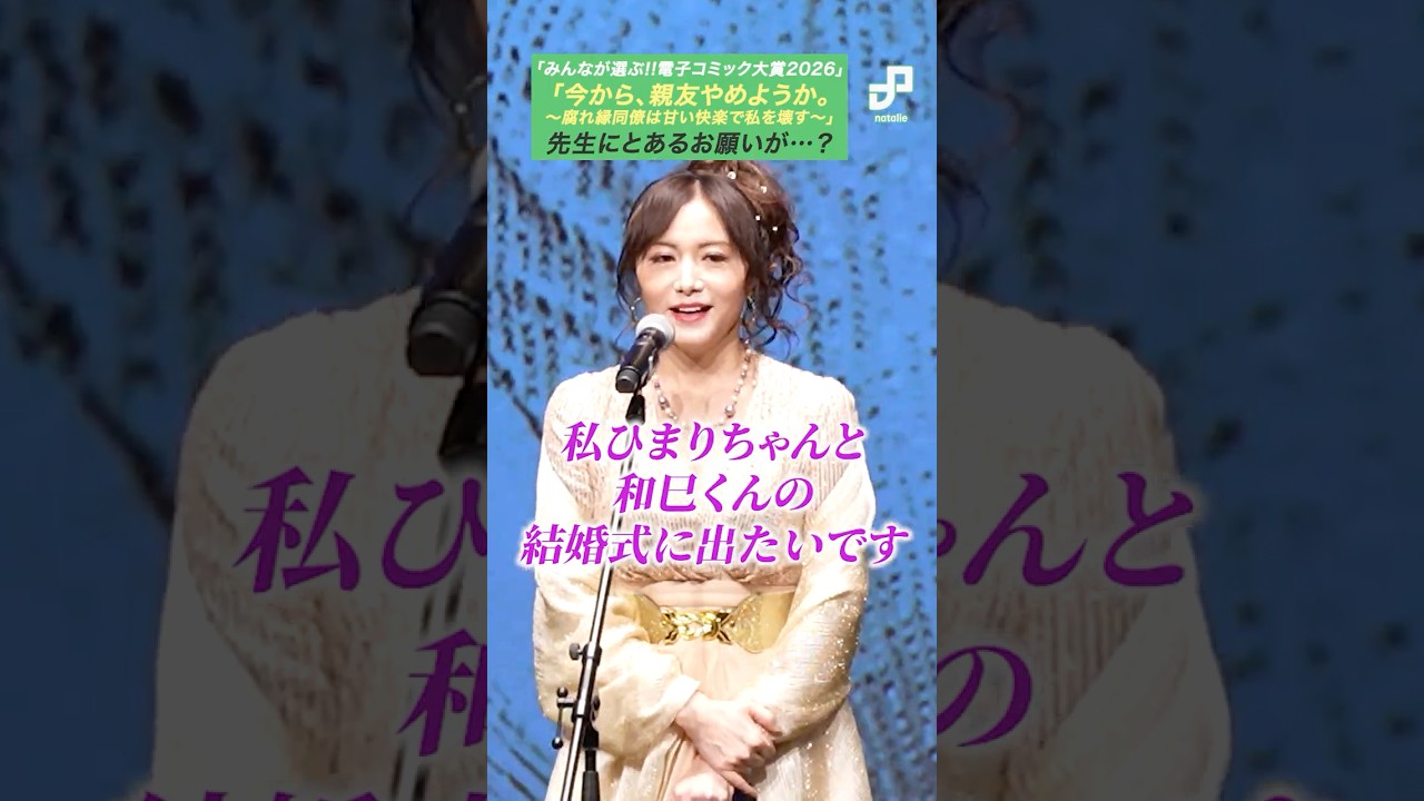 コミックシーモアが主催するマンガ賞「みんなが選ぶ!!電子コミック大賞2026」の授賞式が、2026年2月4日に東京・東京ポートシティ竹芝のポートホールで開催されました。BL部門とTL部門の授賞式には声優の小野友樹さん、たかはし智秋さん、白井悠介さんが登壇。たかはしさんは、TL部門受賞作「今から、親友やめようか。~腐れ縁同僚は甘い快楽で私を壊す~」の先生にとあるお願いを申し出ました。