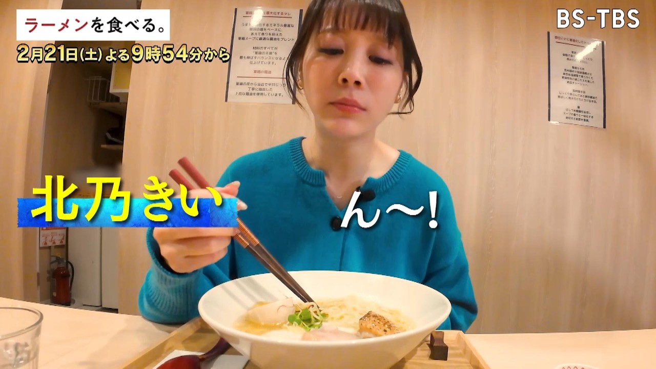 [TVer配信中] 2/21(土)夜9時54分【ラーメンを食べる。】1日50食限定、軍鶏の旨みを“全抽出”した濃厚スープ!…覚悟の一杯を北乃きいが味わい尽くす!