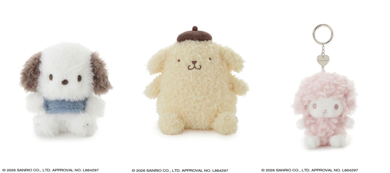 左から・sanrio house オリジナルぬいぐるみ Sサイズ¥3850 sanrio house オリジナルぬいぐるみ Mサイズ¥5940 sanrio house オリジナルぬいぐるみチャーム¥3520 ●商品情報は2026年2月時点のものです。